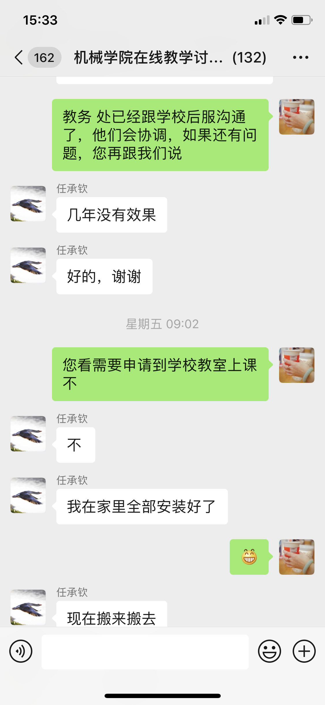 有老师反映在东楼附近,有施工队每天施工,噪音很大,影响老师上课,左老师看到消息后马上联系了教务处相关老师,又反馈给学校后勤服务公司,帮助老师做好后勤保障工作。